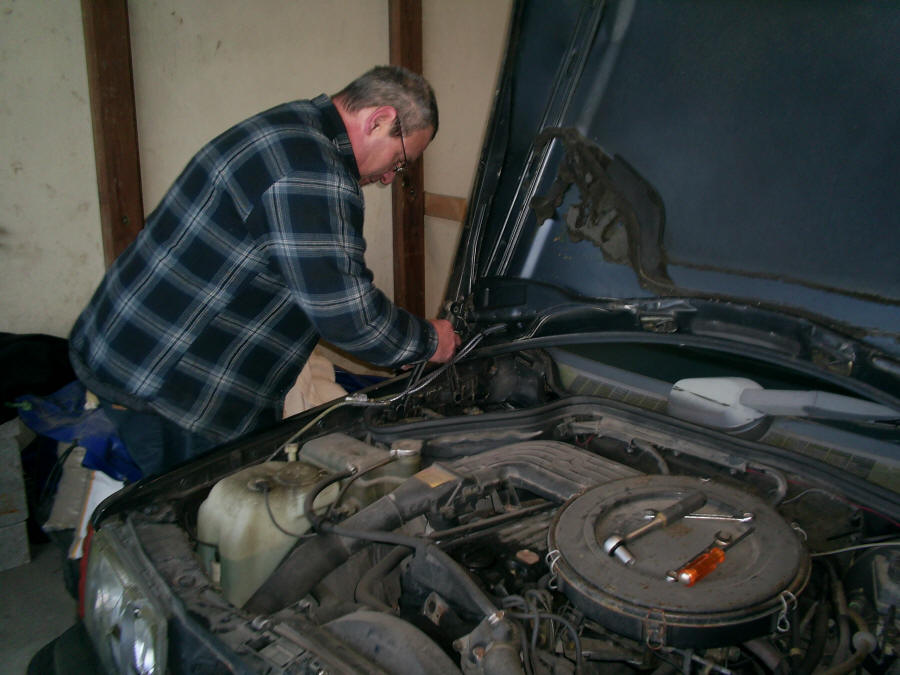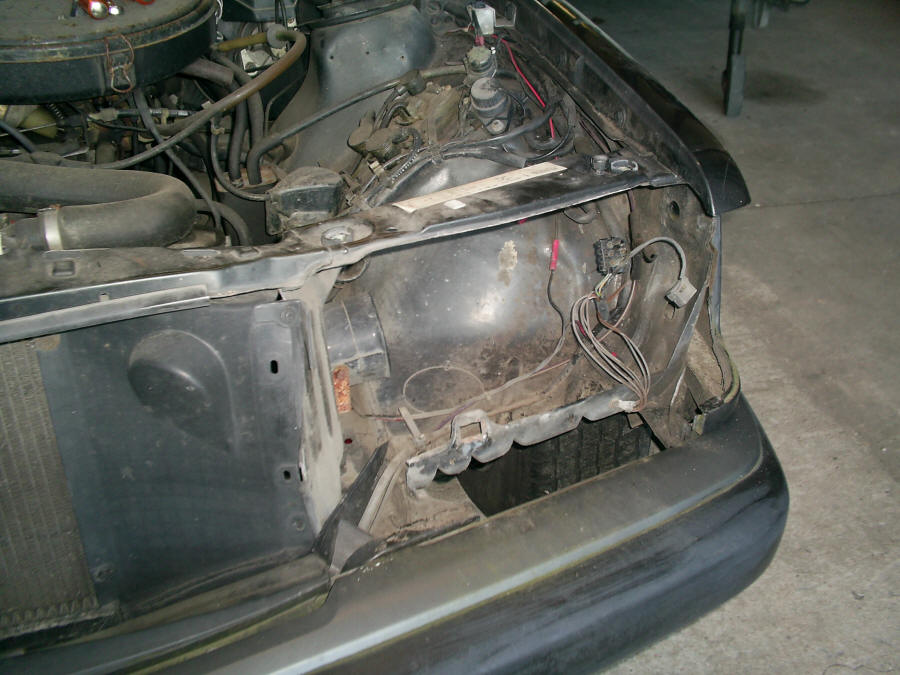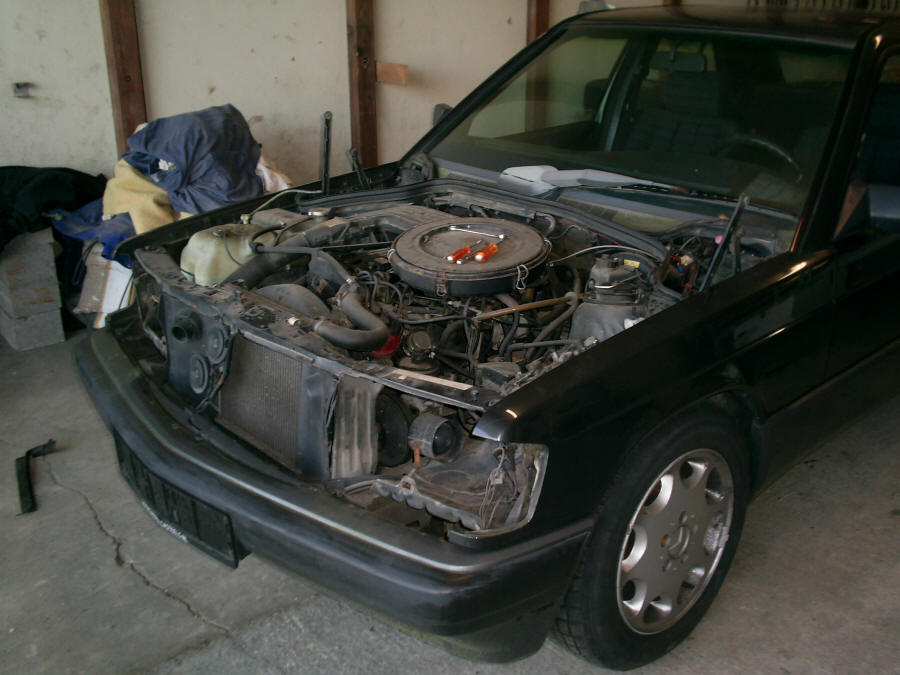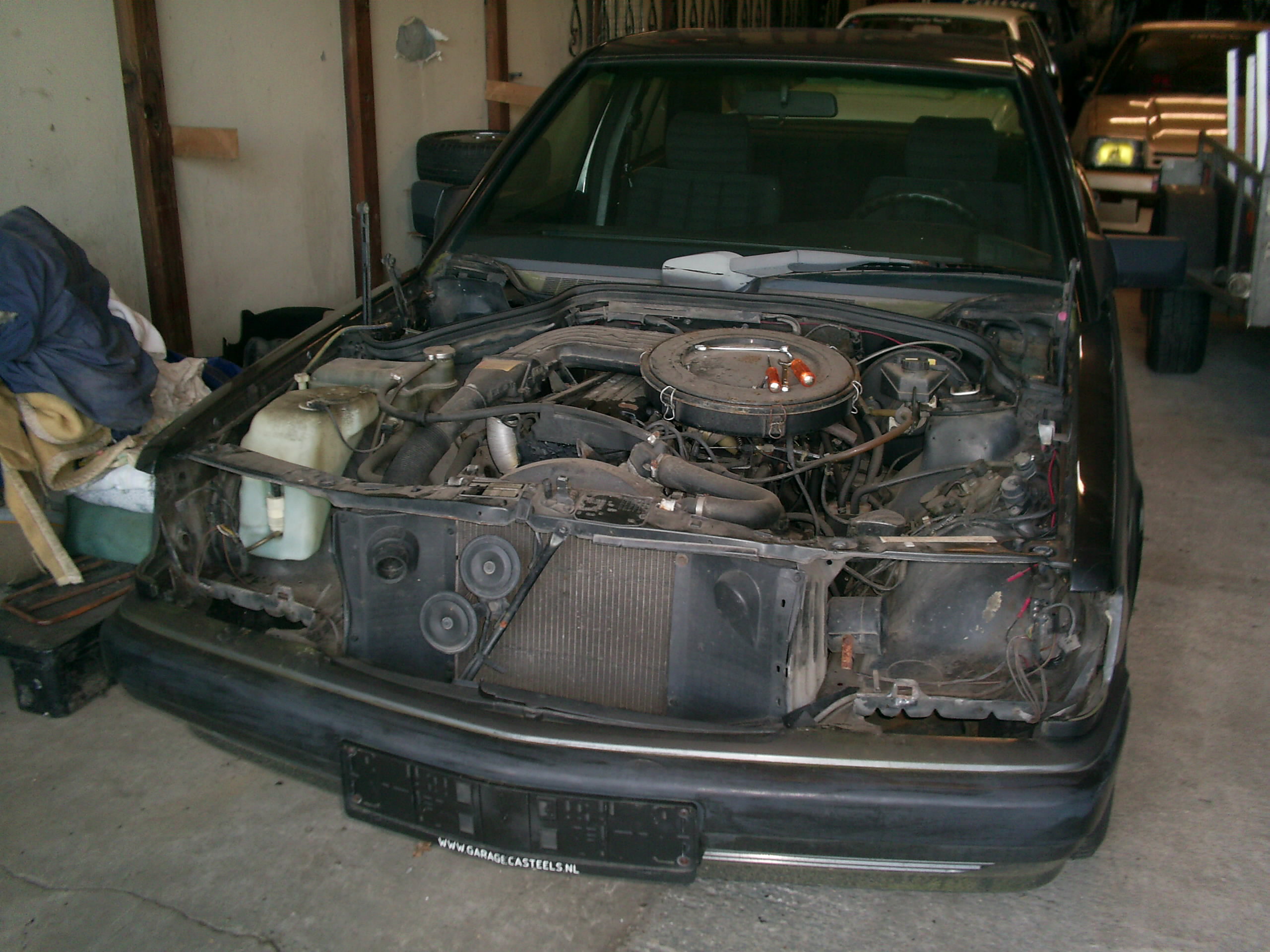 Als eerste de motorkap gedemonteeerd en de lampen uitgebouwd. De lampen behoorlijk nat van binnen. Dus die moeten nu wel even gaan drogen. Het glas is stuk, dus daar moeten twee nieuwe glazen ingezet worden.
