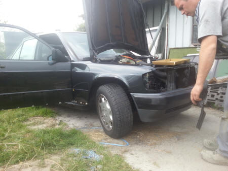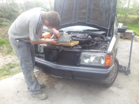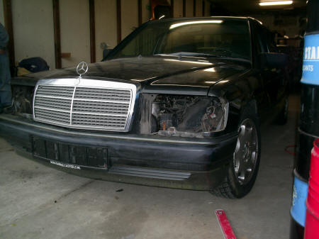 Een aantal weken later zijn de nieuwe lampen voor in de auto gemonteerd, nadat het rechtervoorspatbord was vernieuwd.