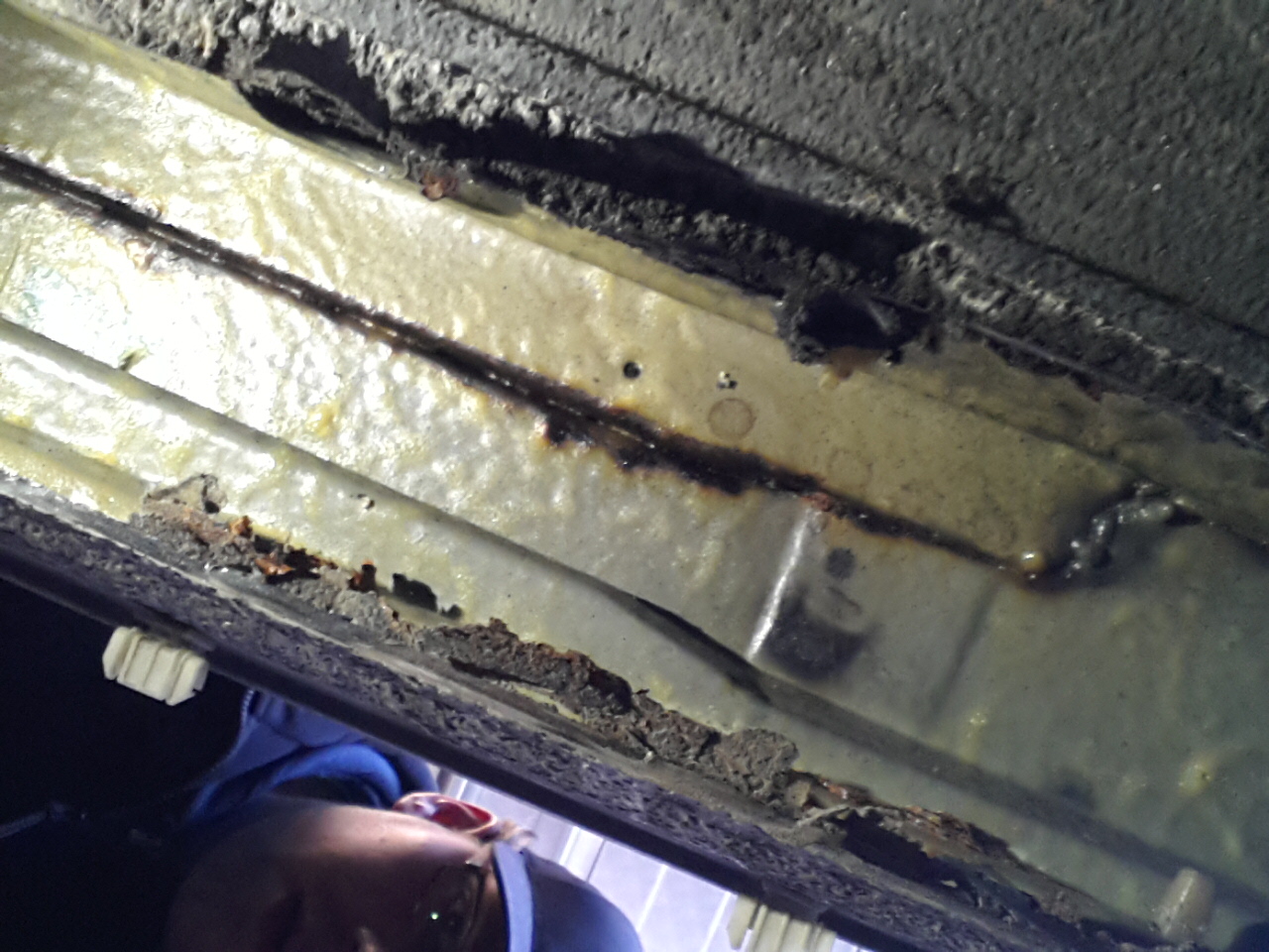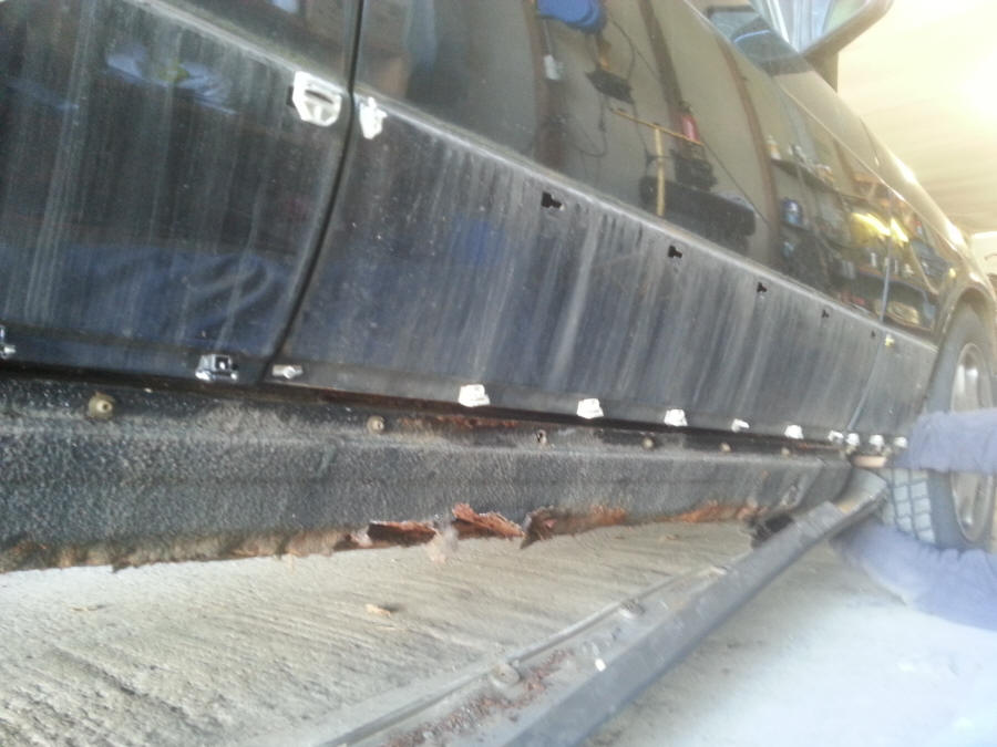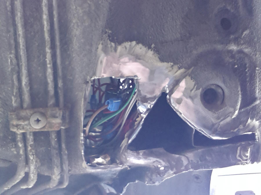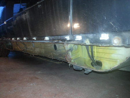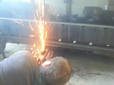 Heel de dorpel eruit geslepen. Nieuwe dorpel klaar om erin gelast te worden.