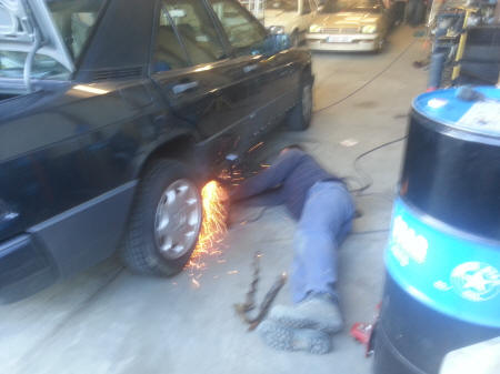 Vandaag stond er wat serieuzer werk gepland. De roestplekken uitslijpen. Helaas toch wel wat tegenvallers gehad. Er is toch wel een stuk meer roest dan eerst gedacht. We hebben eerste het nodige slijpwerk gedaan. Woensdag 26 februari is de Mercedes naar het carrosseriebedrijf gebracht. Daar worden nu de nodige laswerken gedaan, en kunnen we ook gebruik maken van de brug om nog meer herstellingen te doen.