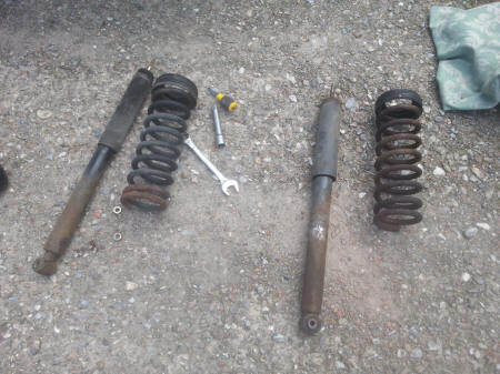 Het vervangen van de achterveren kan vrij simpel gebeuren zonder gebruik van veertrekkers en dergelijke. Bij Wheeler Dealers hebben ze dat eens laten zien bij het opknappen van een 190E 2.3-16.
