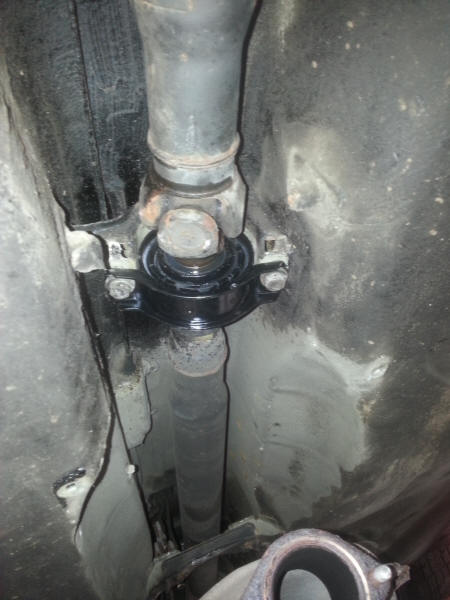 De uitlaat achterpot en middenstuk vol gaten en gewoon versleten. Bij het op laten komen van de koppeling, bonkte de auto behoorlijk. Versleten ophangrubbers van de aandrijfas. Midden- en eindstuk van de uitlaat vervangen en het rubber van de aandrijfas.